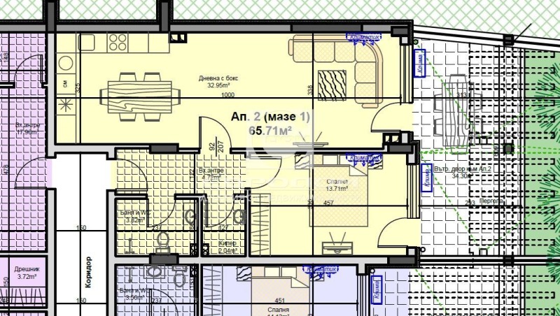 Чиста жилищна площ: 65. 71 кв. м. ;