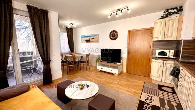 Апартаментът е напълно обзаведен и има на разположение всички необходими електроуреди.