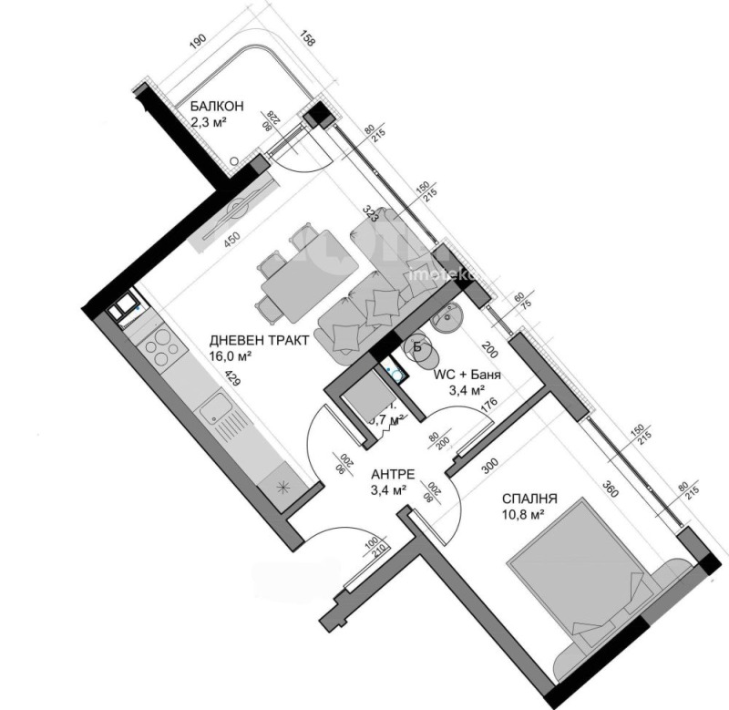 Предлагаме за продажба двустаен апартамент с функционално и добре усвоено разпределение, включващ входно антре, просторна дневна с кухненски бокс, самостоятелна спалня, комбиниран санитарен възел и тераса.
