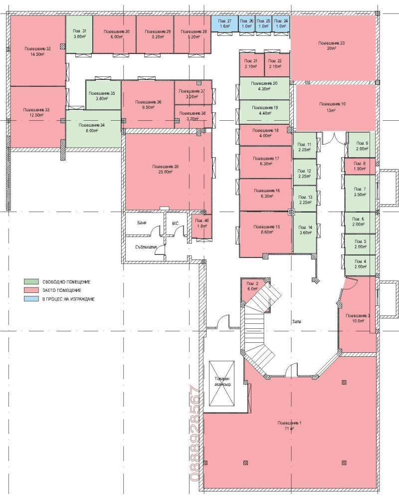 Има свободни помещения от 1кв. м до 15кв. м, като цените варират от 39лв. до 370лв.