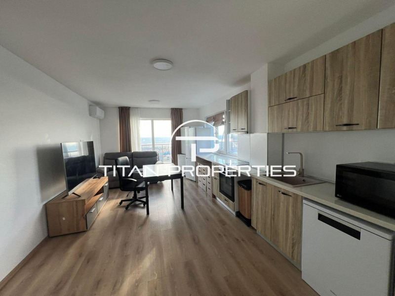 Имота е ситуиран на 5-ти етаж, разполага с площ от 80 кв. м и е разпределен по следния начин: просторна дневна с кухня, две спални, голяма тераса с панорамна гледка, баня с тоалетна