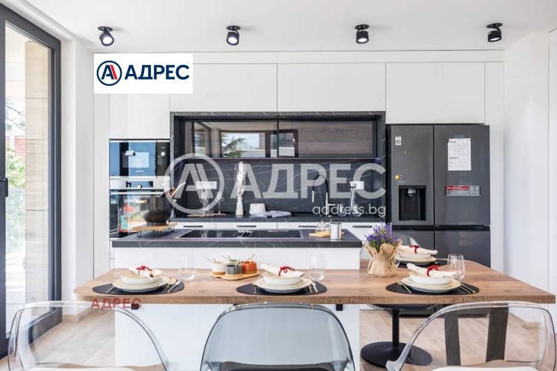 Кухнята е напълно вградена, с дизайнерски аспиратор, интегриран в работния плот, и оборудвана с електроуреди от най-висок клас, което я превръща в истинско удоволствие за готвене и ежедневна употреба.