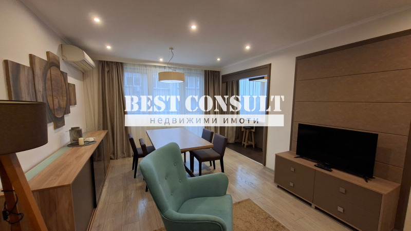 БЕСТ КОНСУЛТ предлага отличен тристаен, среден, напълно обзаведен апартамент - вградена фурна, керамични котлони, ширм, пералня, сушилня, хладилник, три климатика, TV, съвременни мебели. В отлично състояние - изолация с каменна вата и гипсокартон на таваните, висок клас ПВЦ дограма, ламинат, саниран, нова баня. Състои се от просторен дневен тракт с тераса, спалня, детска, баня с тоалетна и входно антре. Не се допускат домашни любимци! Може да се обадите по всяко време, включително и в почивните дни. ОБЯВА 4503
