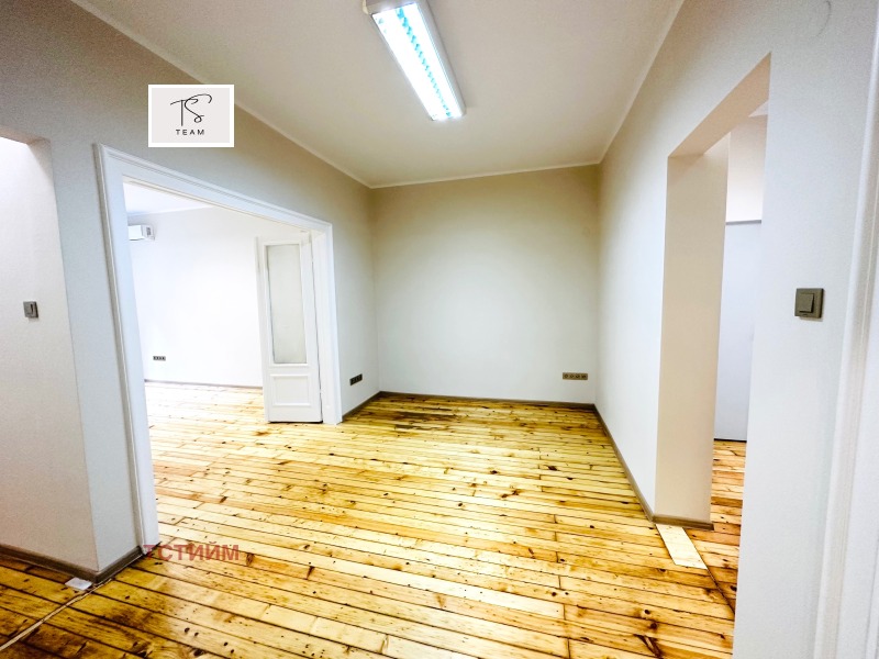 Предлагаме ви просторен и светъл офис под наем, разположен на изключително комуникативна локация в идеалния център на София. Имотът се намира на първи надземен етаж и е с обща площ от 119. 30 кв. м. Вътрешното разпределение е изключително функционално и включва входно антре, просторен вестибюл, три самостоятелни работни помещения, отделна кухня, баня с тоалетна, втора самостоятелна тоалетна и балкон.