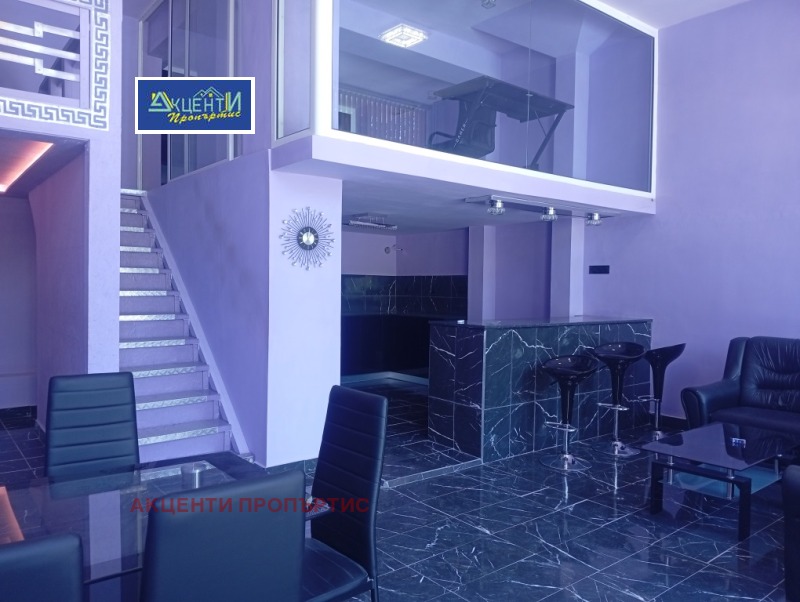 Агенция за недвижими имоти Акценти Пропъртис Ви предлагаме помещение на две нива, с площ от 100кв. м. , разположено в центъра на гр. В. Търново. Първото ниво е с площ от 55кв. м. и се състои от едно високо помещение с обособена кухненска част, коридор, санитарен възел/баня с тоалетна/. Вътрешна стълба води до второто ниво, където и разположена голяма спалня, мокро помещение/пералня/ и баня с тоалетна. Има възможност за монтиране на климатици и боядисване на помещението. Възможност да се отдава както с наличното обзавеждане, така и свободно от мебели. Възможност за промяна на статут!Лесно за обясняване, помещението е подходящо за магазин, офис, живеене, кабинет козметичен салон и др. Номер на офертата 7426.