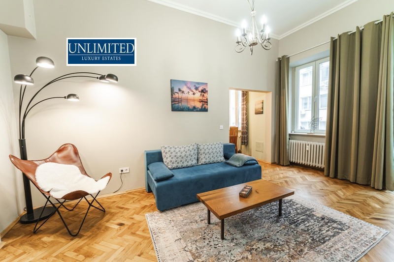Представяме Ви изключителен двустаен апартамент, разположен в една от най-престижните и емблематични локации на София в непосредствена близост до Парламента, бул. Дондуков и историческите жълти павета.