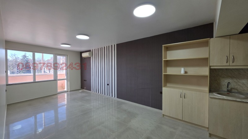 Дава се под наем луксозен офис в идеален център с гараж. Състои се от две отделни помещения, коридор, тераса, баня и тоалетна. Помещенията са с климатици, има кухненски модул. Терасата е остъклена с възможност за поставяне на рекламни надписи. Офисът е на първи етаж над магазини. Подходящ за адвокатска или счетоводна кантора, мед. кабинет, обучителен център и др.