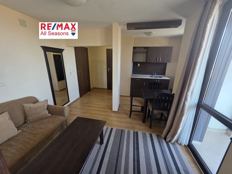 Двустаен апартамент в ски курорта Банско. Обзаведен е и готов за нанасяне. Отделни партиди за ток и вода. Интернет и телевизия. Отопление на климатици. Такса поддръжка 12 евро/кв. м годишно. Собствениците ползват вътрешен басейн и спа зоната безплатно.