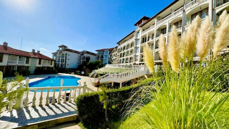 ID:688 Предлагаме за продажба двустаен апартамент в красив жилищен комплекс в Свети Влас. Състои се от просторна всекидневна с кухня и трапезария, спалня и баня с тоалетна. Продава се обзаведен и оборудван. Комплексът разполага с добре поддържан, ограден, озеленен двор. Комплексът разполага с ресторант, открит плувен басейн с шезлонги и чадъри, както и детска площадка. На разположение е и малък спа център със сауна. Осигурен е паркинг. Осигурена е охрана. Акт 16.