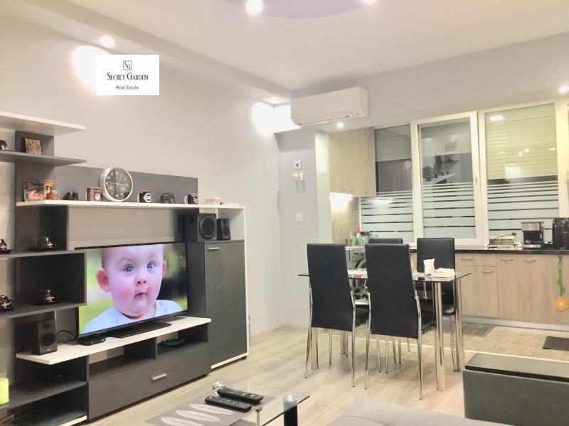 Жилището е ситуирано на първи от осем етажна сграда, обезопасен с външни, автоматични ролетни щори, контрол на достъп и добри общи части. Отоплението е посредством климатици, поставени във всяка стая, централна топла вода. Има инсталирана охранителна система-СОТ. Имотът е с вътрешна и външна изолация, следователно с ниски енергийни разходи. Жилището е обзаведено с висок клас мебели и електроуреди. В непосредствена близост се намират училища, детски градини, медицински центрове, магазини, заведения, Супер Маркет- Била, Т-Маркет, Лидъл, спирки на градски транспорт, Метростанция-Люлин е на петстотин метра пешеходно разстояние. Свободно паркиране около блока. Без домашни любимци.