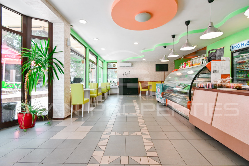 Имотът предлага функционално разпределение и отлични условия за развитие на разнообразни бизнес дейности. Налични са всички необходими инсталации ВиК, ел. , аспирация и вентилация, СОТ, интернет и озвучаване, както и качествена дограма със стъклопакет с нискоемисионно стъкло. Разпределението позволява комбиниране на производство, заведение и/или търговска дейност. Обектът е с 18 метра лице и големи витрини, осигуряващи отлична видимост и рекламна площ.