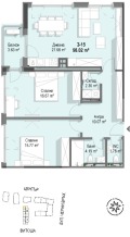 2. Дневна с кухненски бокс 27, 86 кв. м.