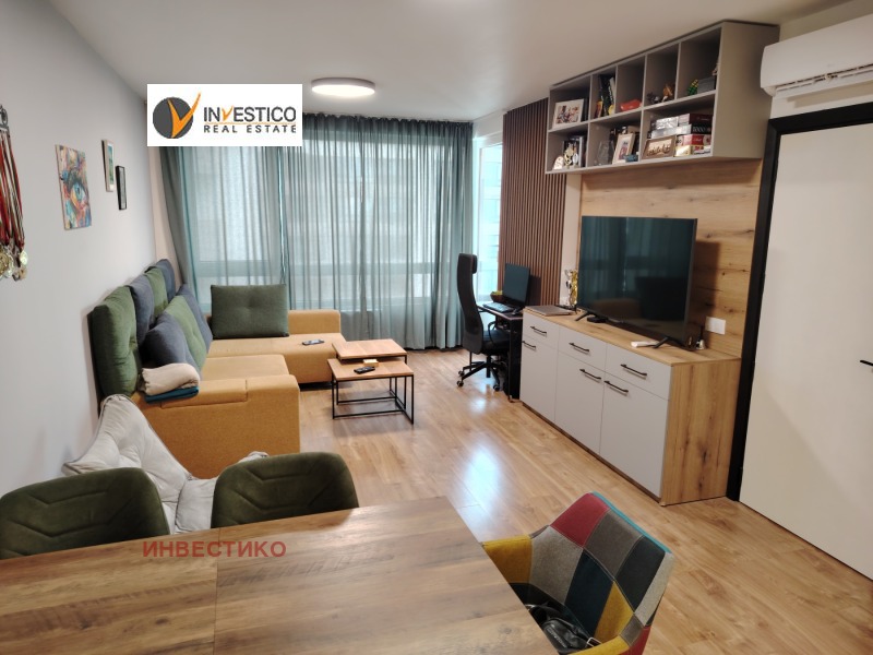 Двустаен, напълно обзаведен в импозантната сграда АВИГЕЯ на АРТЕКС на изхода на метростанция Дружба. Разпределение: дневна с кухненски бокс, баня, тераса. Застроена площ по документ 61, 50 кв. м, с общи части 75, 21кв. м, прилежаща земя. Опция за покупка или наемане на парко място. ID: 7721