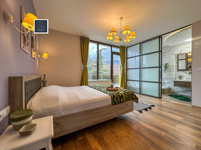 Таванна височина 2. 90 м. Разпределението включва втора дневна зона, две спални, баня с тоалетна и мастър спалня с дрешник, собствена баня с тоалетна и джакузи, както и излаз към балкон.