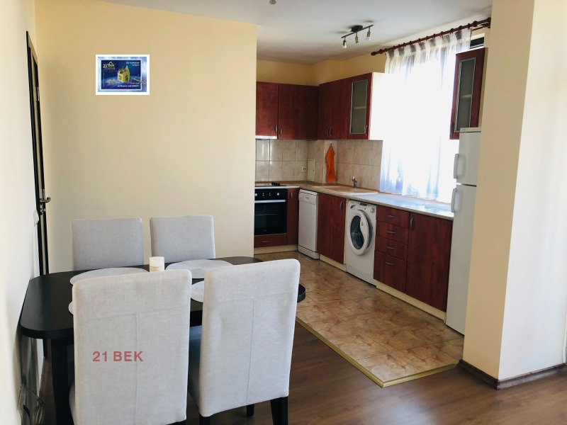 Апартаментът се намира в нова луксозна кооперация до Новотела с асансьор. Жилището е с прекрасно разпределение, изцяло южно изложение, с просторен хол с трапезария и кухненски бокс, 2 самостоятелни спални, баня с тоалетна и отделно тоалетна. Има две тераси. Апартаментът е напълно обзаведен с нови мебели, в кухнята има всички необходими ел. уреди: хладилник, печка, пералня, съдомиялна и т. н. Климатик. Подовите настилки са: ламиниран паркет и теракот. Не се допускат домашни любимци. За повече информация:0898774411