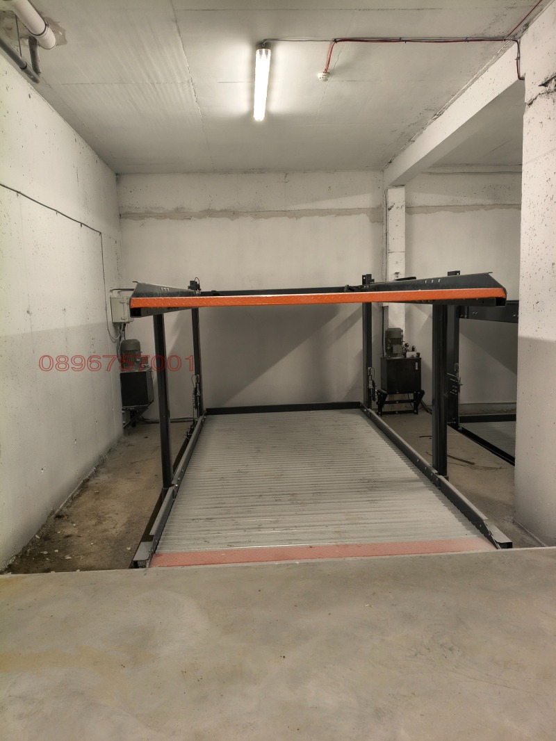 Дава се под наем 2 подземни паркоместа с механична платформа, позволяваща паркиране на два автомобила, един на долно и един на горно ниво. Цената е за едни автомобил.