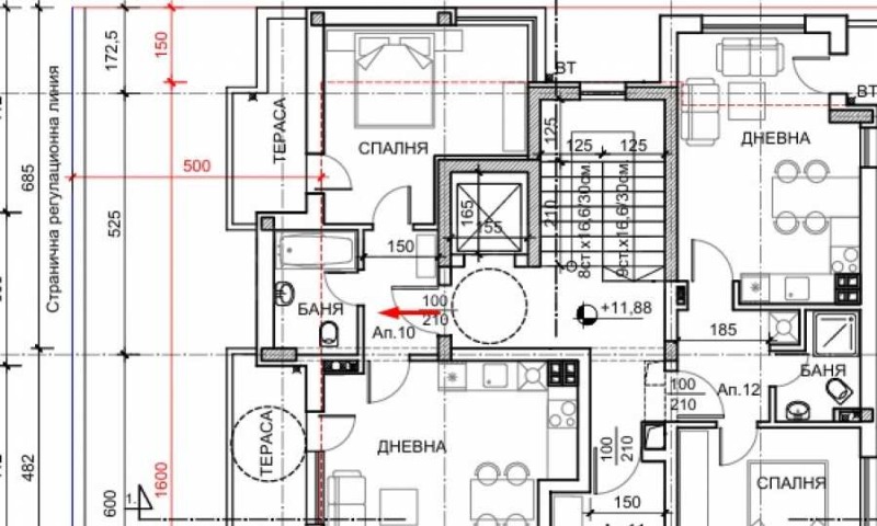 Имотът се намира на 5-и етаж и има обща площ 76. 25 кв. м, застроена площ - 65. 50 кв. м и общи части - 10. 75 кв. м.