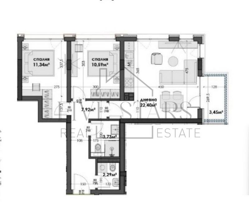 Файв Старс предлага тристаен апартамент в новострояща тухлена сграда. Намира се в близост до Втори корпус на ИУ, Била и Първа езикова гимназия.