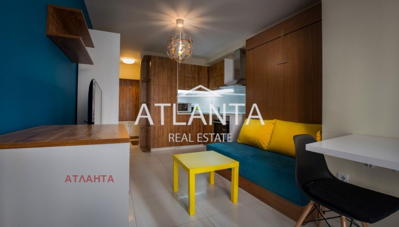 Апартамента е на ет. 3/ 6 , в нова сграда . Апартамента представлява - вх. антре , 1 спалня, дневен тракт с вградена кухня , тераса , баня + тоалетна. Дава се напълно обзаведен, с климатик . Дава се дългосрочно и краткосрочно