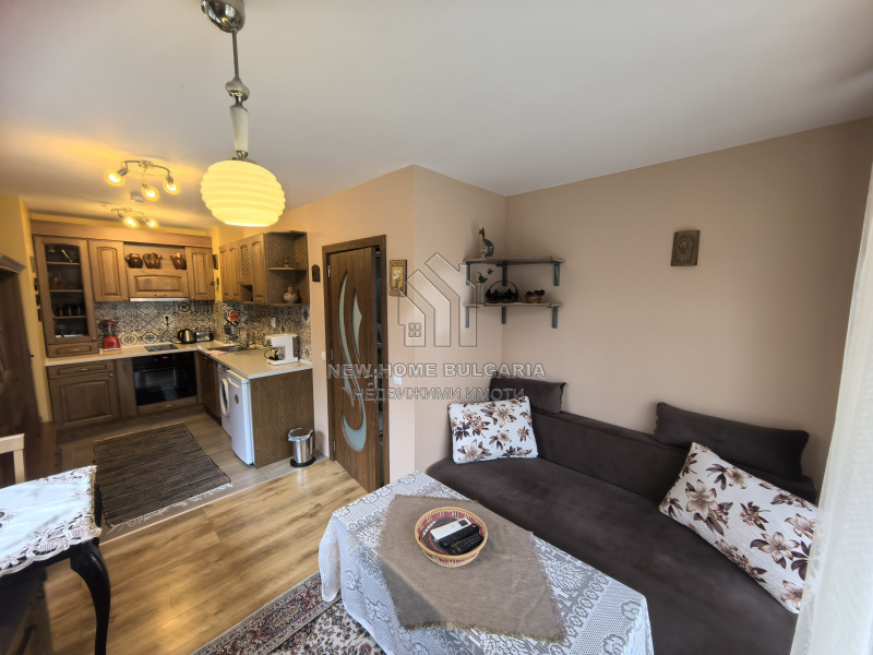 Разполага с просторна всекидневна с диван и телевизор, свързана с напълно оборудвана кухня с печка, хладилник, пералня и абсорбатор, което я прави идеална за домакинстване.