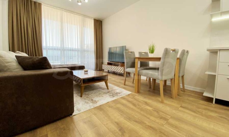 Апартаментът е напълно обзаведен и оборудван с всичко необходимо, със стилни мебели по проект и ел. уреди в гаранция и с висок енергиен клас, включително съдомиялна. Разполага и със smart TV, както и оптичен интернет. Отоплението и охлаждането са решени с инверторни климатици във всяка стая.