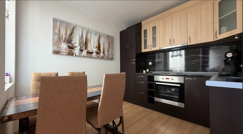 Продава се прекрасен тристаен апартамент в град Несебър, разположен на петия етаж в модерен жилищен комплекс с басейн и добре поддържана територия. Комплексът е с ниска такса поддръжка само 8 евро на квадратен метър годишно, което прави поддържането на имота удобно и икономично. Апартаментът се намира само на 450-500 метра от морето и плажа, в район с отлично развита инфраструктура, в близост до магазини, ресторанти, кафенета, аптеки, спирки на обществен транспорт и всичко необходимо за комфортен живот и почивка. Жилището е напълно обзаведено и оборудвано с модерни мебели и битова техника, което позволява незабавно нанасяне без необходимост от допълнителни инвестиции. Апартаментът е светъл, просторен и функционален, с удобно разпределение, включващо дневна с кухненска зона, две отделни спални, баня със санитарен възел и уютни жилищни пространства, осигуряващи комфорт както за постоянно живеене, така и за почивка край морето. Сградата е въведена в експлоатация и има издаден Акт 16, като са открити индивидуални битови партиди за електричество и вода. Благодарение на отличната локация близо до морето и цялата градска инфраструктура имотът е отличен избор както за лично ползване, така и за инвестиция с възможност за получаване на стабилен доход от отдаване под наем.