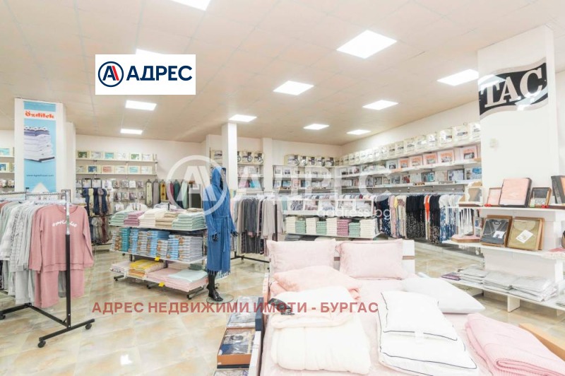 Адрес лредставя на вашето внимание партерен магазин с площ 520 кв. м. находящ се в к. к. Слънчев Бряг. Имотът се състои от обширна търговска зала, склад, два кабинета с два санитарни възела.