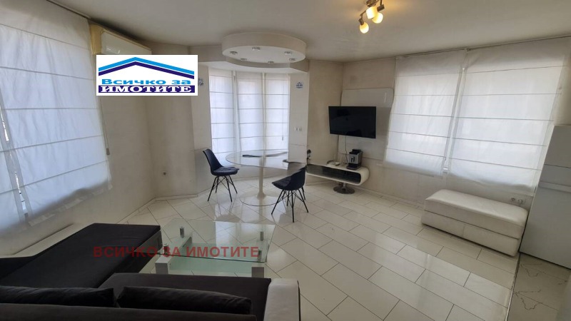 ' Всичко за имотите ' Ви представя двустаен апартамент в ид. център на гр. Русе, състоящ се от дневен тракт със санитарен възел, спалня със самостоятелна баня с хидромасажна вана. Външна топлоизолация, висок клос ПВЦ догрома, отопление с инверторни климатици, напълно обзаведен