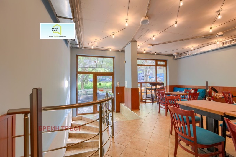 Представяме имот за продажба в кв. Лозенец, със статут на кафе-бистро и фитнес, разположено на партер в непосредствена близост до Физико-математическия факултет. Разполага с помещение на партер с площ от 73кв. м. , функционирало като заведение с бар и санитарни възли и в сутерен 222кв. м. , където е разположена фитнес зала със съблекални и душове, рецепция, масажно студио, сауна и парна баня, тоалетни.
