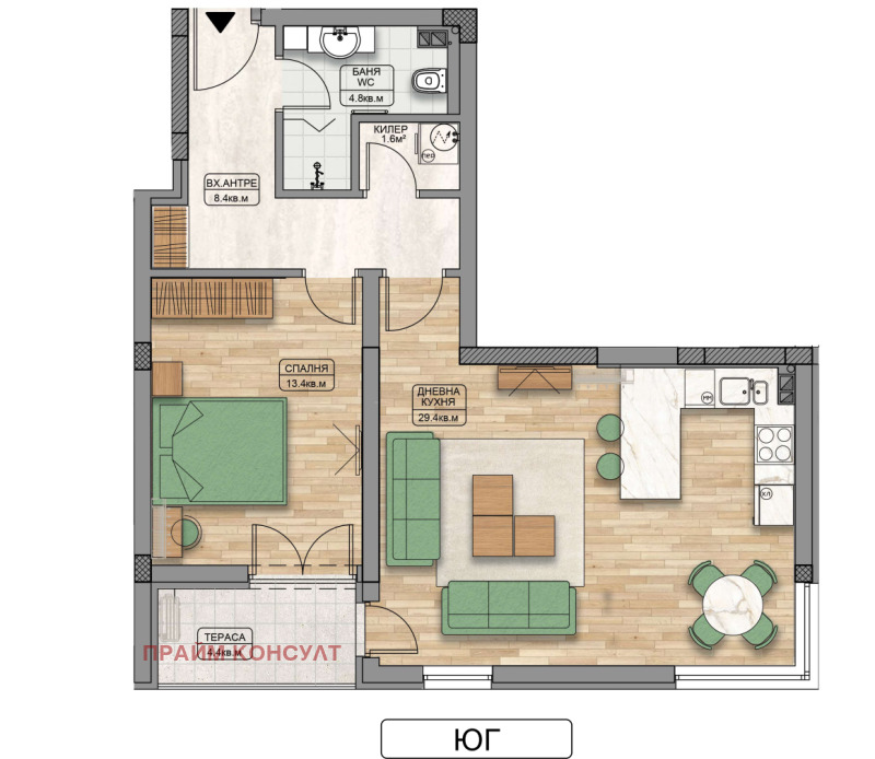 - Просторен хол с кухненски Бокс