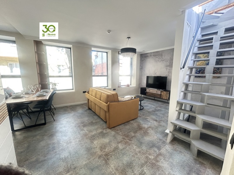 Предлагаме под наем, просторен тристаен апартамент, разположен на две нива, съчетаващ функционалност, комфорт и съвременен дизайн. Апартамента е след основен ремонт, обзаведен лукс и оборудван с всичко необходимо. Първи наематели след обновяване. Ниво 1: Светла и напълно оборудвана кухня, обединена с уютна всекидневна в общо пространство. Самостоятелно санитарно помещение. Ниво 2: Две комфортни спални, осигуряващи тишина и спокойствие. Санитарно помещение (баня с тоалет)и скрита гардеробна с пералня. Имотът е с подово отопление и вентилационна система, осигуряващи отличен климат, свеж въздух и комфорт през цялата година. Къщата разполага с прекрасна покривна тераса (само лично ползване), идеална за слънчеви дни, отдих или приятни вечери на открито. Към сградата има и вътрешен двор, предназначен за общо ползване от всички съседи подходящ за почивка и безопасна игра на деца. Имотът се отдава както дългосрочно, така и кротосрочно (месечно ползване)с други условия по наемане. Имот, който съчетава стил, престиж и уют готов да се превърне във Ваш нов дом.