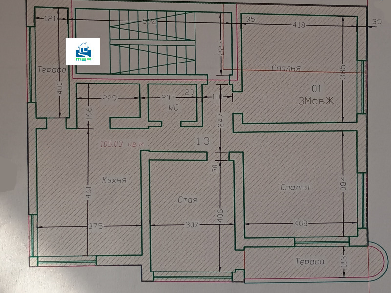 МЕА-недвижими имоти продава на бул. Христо Ботев 105 кв. м, четиристаен, САНИРАН, непреходен апартамент /етаж от къща/, ЗА РЕМОНТ, състоящ се от: две самостоятелни, просторни спални, дневна с излаз на балкон, трапезария с кухненски бокс с излаз на балкон и прилежащите му таван 40 кв. м и мазе 15 кв. м.