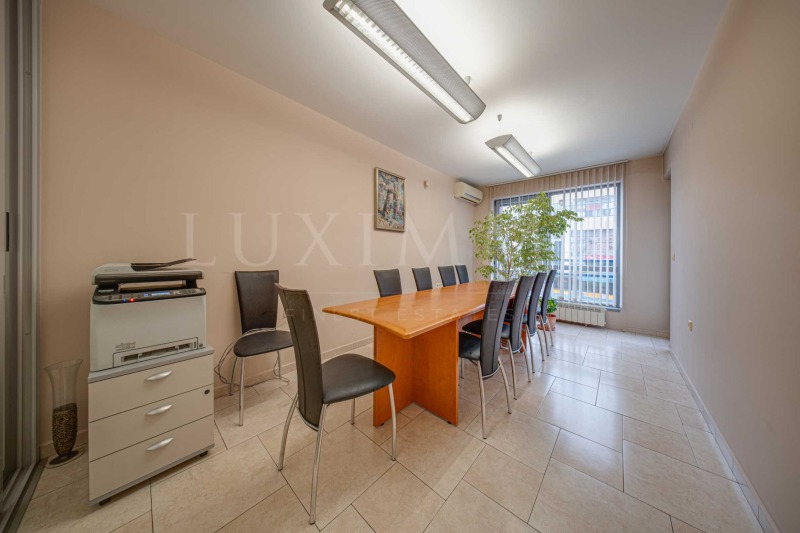 Офисът заема първи етаж над партер и е със застроена площ от 116. 89 кв. м. + 4. 35 % общи части. Завършен е качествено и се предлага със следните довършителни работи: