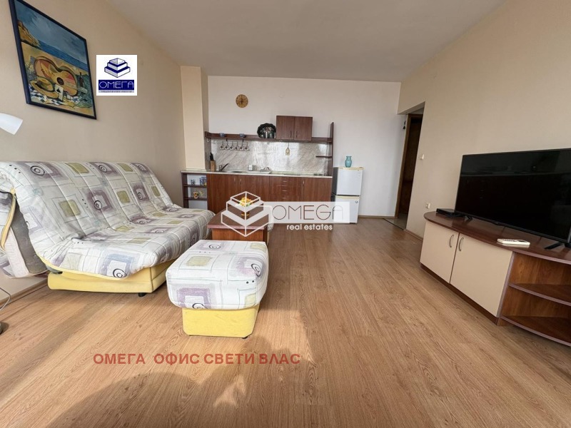 Недвижими имоти ОМЕГА Ви предлага двустаен обзаведен апартамент с площ 66. 00кв. м. на 2 етаж с разпределение: коридор, дневна с кухня, спалня, баня с тоалетна и една обща тераса с подход от двете стаи и невероятна панорамна гледка към морето. Апартамента е обзаведен с мебели и техника, оборудвана баня с тоалетна. Имота е разположен в жилищна сграда намираща се в град Свети Влас. Разтоянието до морето е около 700м. Изключително тихо и спокойно место!Самостоятелни партиди на електричество и вода!