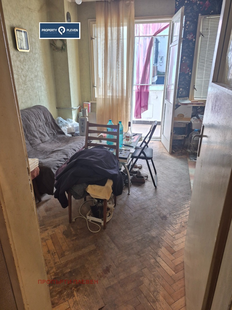 Оферта 30866. Апартаментът се намира тухлена сграда на първи висок етаж(над гаражи). Състои се от две спални, хол, кухня, баня, тоалетна и две тераси. За ремонт. На отделна цена от 20000 евро се продава и гараж 19кв. м. За повече информация на тел. 0885006552