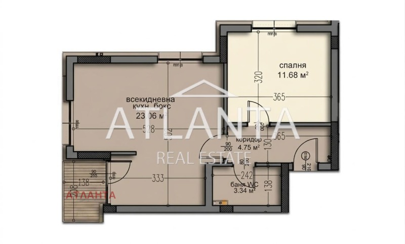 Атланта Ви предлага двустаен апартамент на трети жилищен етаж, с отлично разпределение, функционалност и простор пред него.
