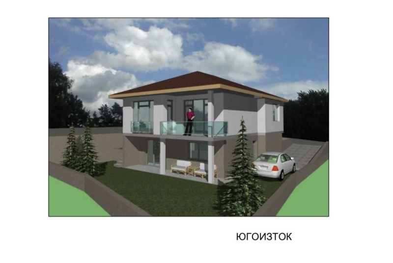 Слънчев парцел между къщи, започнат строеж, акт 16 (ще бъде завършена началото на 2027г. ), къщата се строи с високо качествени материали, ще се издава на шпакловка и замазка.