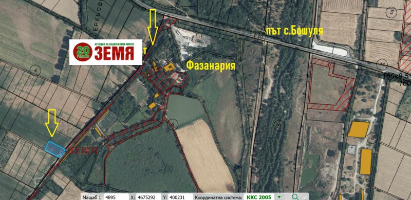 Лице 35 метра на асфалтов път , на 500 метра от Фазанарията на Бошулско шосе. Подходящ за производствена и складова дейност.