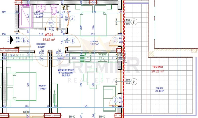 Имоти Премиер представя тристаен апартамент в новострояща се сграда.