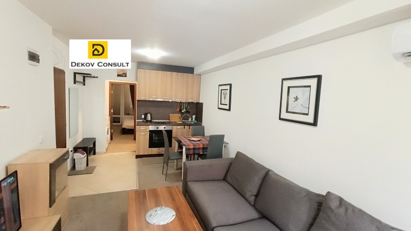 Жилището се намира на 1-ви (партерен) етаж в нова тухлена сграда с отлични общи части. Подходът към жилището е от входа на блока. Имотът е напълно обзаведен и оборудван с всичко необходимо за живеене и се състои от дневна, спалня с ТЕРАСА и двойно легло, обща баня и тоалет, перална ниша.