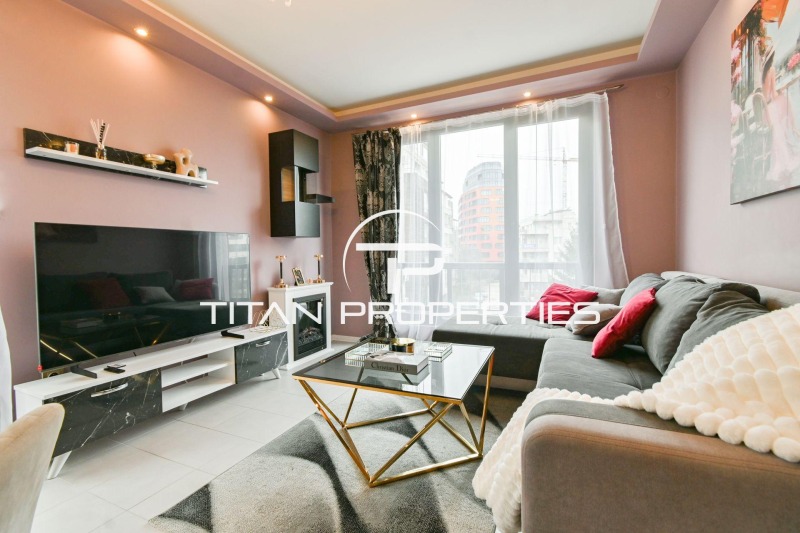 Титан Пропъртис - офис Младост с радост предлага на Вашето внимание тристаен апартамент под наем в жк. Кръстова вада, София. Жилището с площ 120 кв. м. е ситуирано на 3-и етаж в нова пететажна сграда. Южното изложение осигурява обилна дневна светлина. Разпределението включва антре, дневна с кухненски бокс, две спални и две бани с тоалетна. Обзаведен и разполага с отопление на ток, посредством климатик.