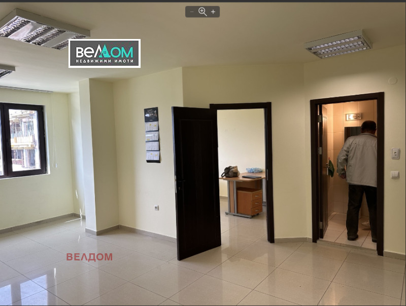 Агенция ВЕЛДОМ дава под наем ОФИС 52 м2 на основен булевард в гр. Варна с постоянен интензивен автопоток, на 5 мин. от центъра. Изключително комуникативно място с бърза и удобна връзка към всички точки на града. Намира се на 5-ти етаж в модерна офиссграда с асансьор и контрол на достъпа- светъл, топъл и приветлив. Състои се от 2 помещения и собствен санитарен възел. Такса почистване и поддръжка общи части-25 Е/мес. Паркомясто-60 Е/мес. Всички цени са без данъка.