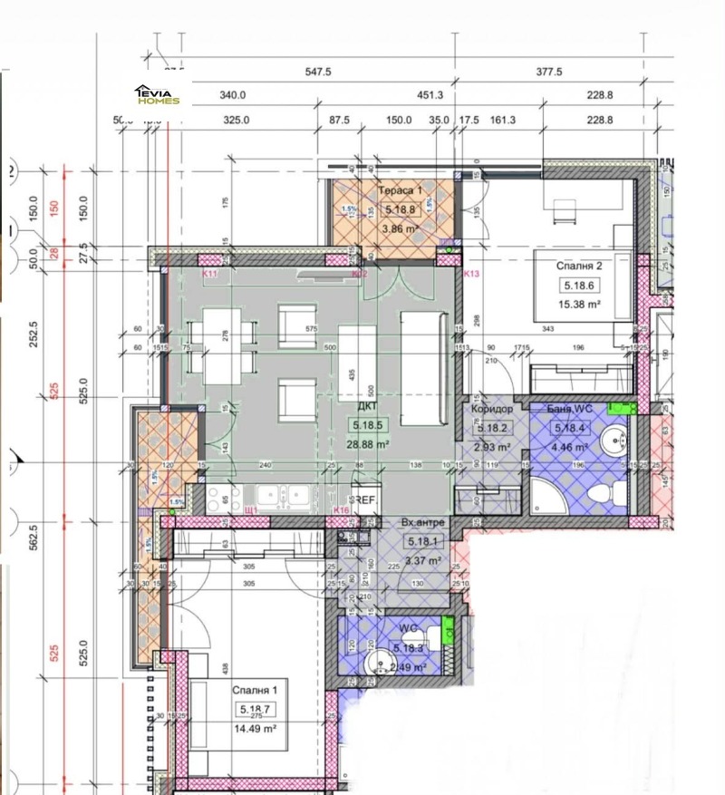 Продаваме тристаен апартамент с площ 113, 40 кв. м (чиста площ 95, 62 кв. м) в нова бутикова сграда в кв. Витоша, район Лозенец. Жилището разполага с две отделни светли спални по 15 кв. м, всяка със собствена баня и тоалетна, просторна дневна част, коридор, тераса с достъп от дневната и спалнята. Изложението е юг-запад-север, което осигурява естествена светлина през целия ден.