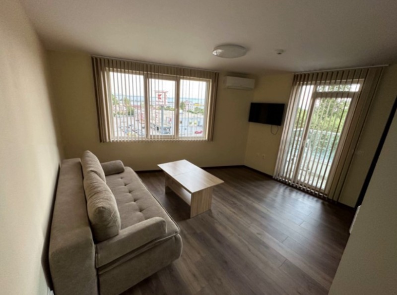 Имотът е обзаведен, с площ 40 кв. м, на 5-ти етаж от 9 етажа в сграда с асансьор. Разпределението включва входно антре, хол с кухня и трапезария и обособен спален кът, баня с тоалетна и тераса.