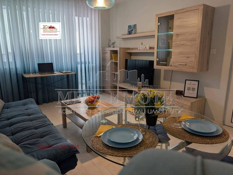 ЛИЧНА ОФЕРТА на МЕГА ИМОТИ!!! На метри от Флората и в близост до центъра на Бургас в един от най-предпочитаните райони за живеене, кокетен изцяло обзаведен двустаен апартамент на непоследен етаж в сграда с асансьор, състоящ се от самостоятелна кухня, светъл и топъл хол, самостоятелна спалня, баня с WC и две тераси. Жилището е напълно обзаведено и оборудвано с висококачествени електроуреди, мебели и посуда. Допълнителен уют допринася електрическият каминен панел в хола. Имота се отдава за дългосрочни ценители на красотата и уюта. Реф. номер 19902