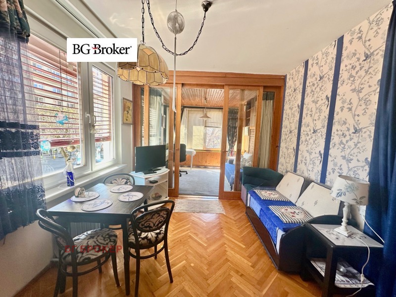 Имотът е обзаведен и оборудван, готов за нанасяне. Интериорът е в много добро състояние, със запазен стил на обзавеждането, създаващ уютна и приятна атмосфера на Стара София. Банята е новоремонтирана. Преходната спалня е с единично легло.