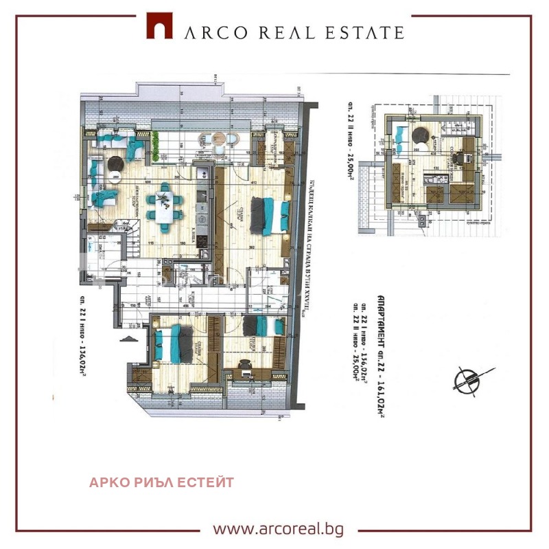Апартамент 22 е на шести от шест етажа. Застроена площ 161. 02 кв. м.