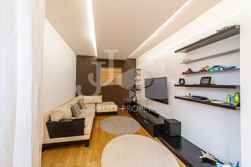 Предлагаме на Вашето внимание прекрасен четиристаен апартамент, находящ се в един от най-желаните и добре уредени комплекси в София, а имено Резиденшъл Парк София. Комплексът се отличава с бързи и лесни връзки с главни пътни артерии, големи междублокови пространства, много зеленина и удобства. Апартаментът е с внушителните 151 кв. м, като разполага и с две просторни тераси, разположен на втори етаж с гледки към София и Витоша. Състои се от: входно антре, обширна дневна и трапезария с обзаведен кухненски бокс, две спални, кабинет, баня с тоалетна, тоалетна, две тераси. Изложението е север и юг, което осигурява естествена светлина през целия ден. Апартаментът съчетава комфорт и практичност, правейки го прави отличен избор за семейство, което иска да си осигури спокойствие и уют.