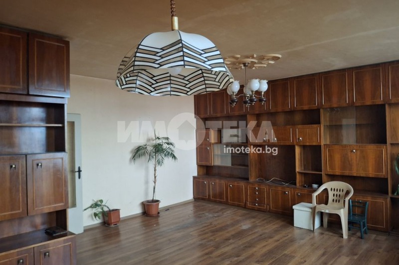 Просторен тристаен апартамент, състоящ се от голям дневен тракт с бокс, който е обособен като такъв, с врата както от дневния тракт, така и от коридора, две голями спални с вградени гардероби, достатъчно просторни коридори с много възможности за преустройство. 2 санитарни възела, плюс допълнително мокро помещение, което дава възможност за направата на 3 бани. Имотът разполага с допълнително избено помещение от 10, 18 кв. м. , което се намира на 3-ти етаж, с прозорец е, самостоятелен вход и е оборудвано като битова стая.