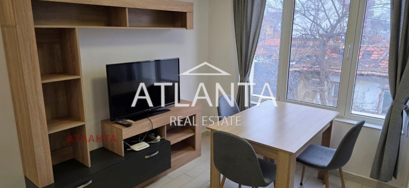 Апартамента е на ет. 3/ 6 , в нова сграда . Апартамента представлява - вх. антре , 1 спалня, дневен тракт с вградена кухня , тераса , баня + тоалетна. Дава се напълно обзаведен, с климатик . Дава се дългосрочно